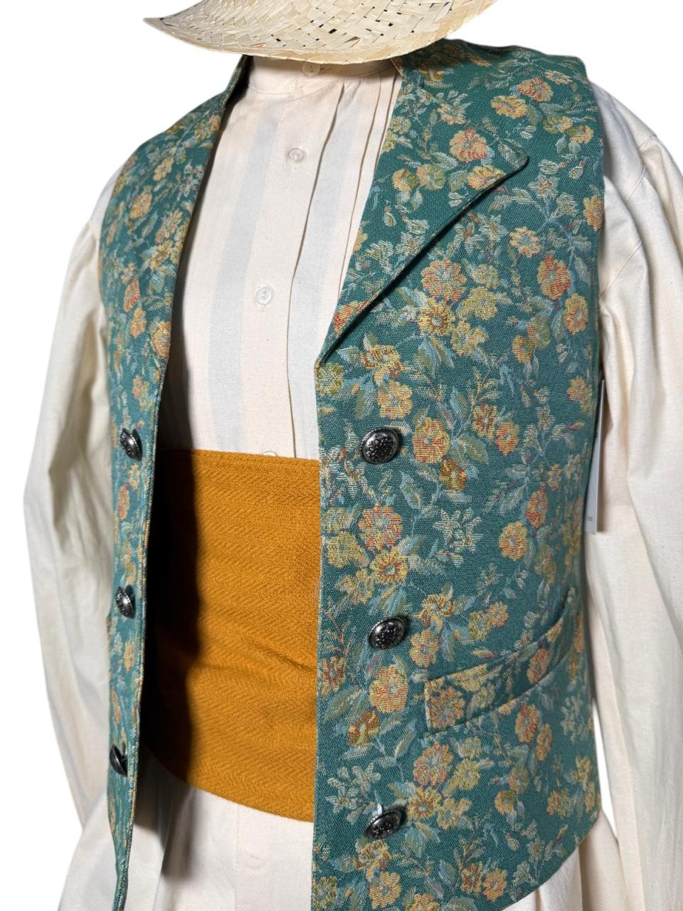 Chaleco tapicería verde azulado flores grandes